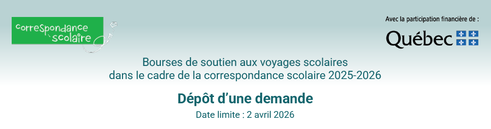 Il est possible de financer une partie cette activité en soumettant une demande de bourse. Adressez-vous à la direction du programme Correspondance scolaire par le biais de ce formulaire.